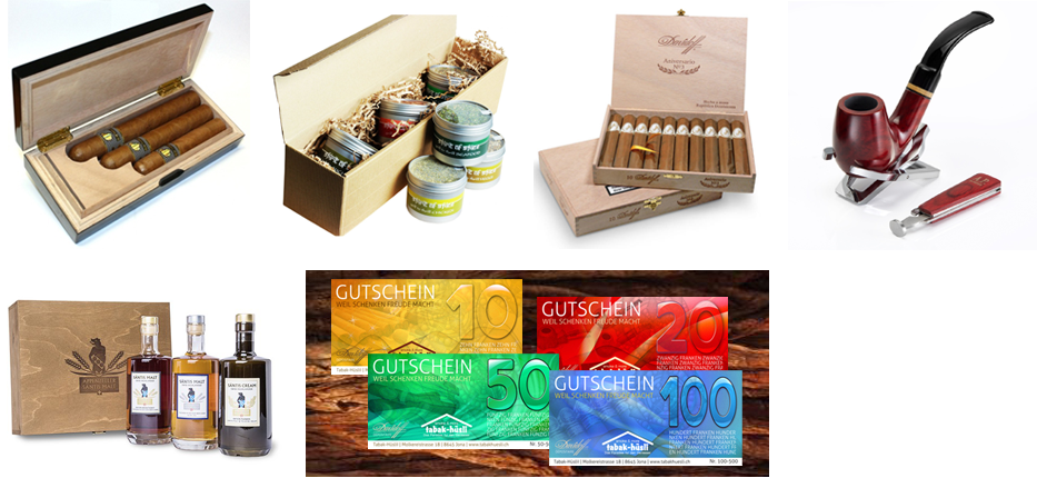 Suchen Sie das passende Geschenk für den Zigarren–, Pfeifen– oder Spirituosenliebhaber? Bei uns finden Sie eine grosse Auswahl an Geschenksideen die begeistern.